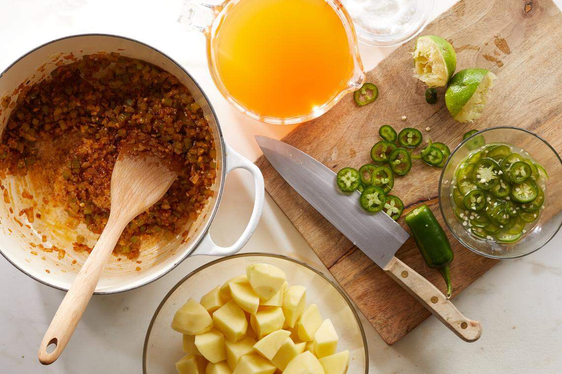 Equipment to make Potato Cheddar Soup and Quick-Pickled Jalapeños