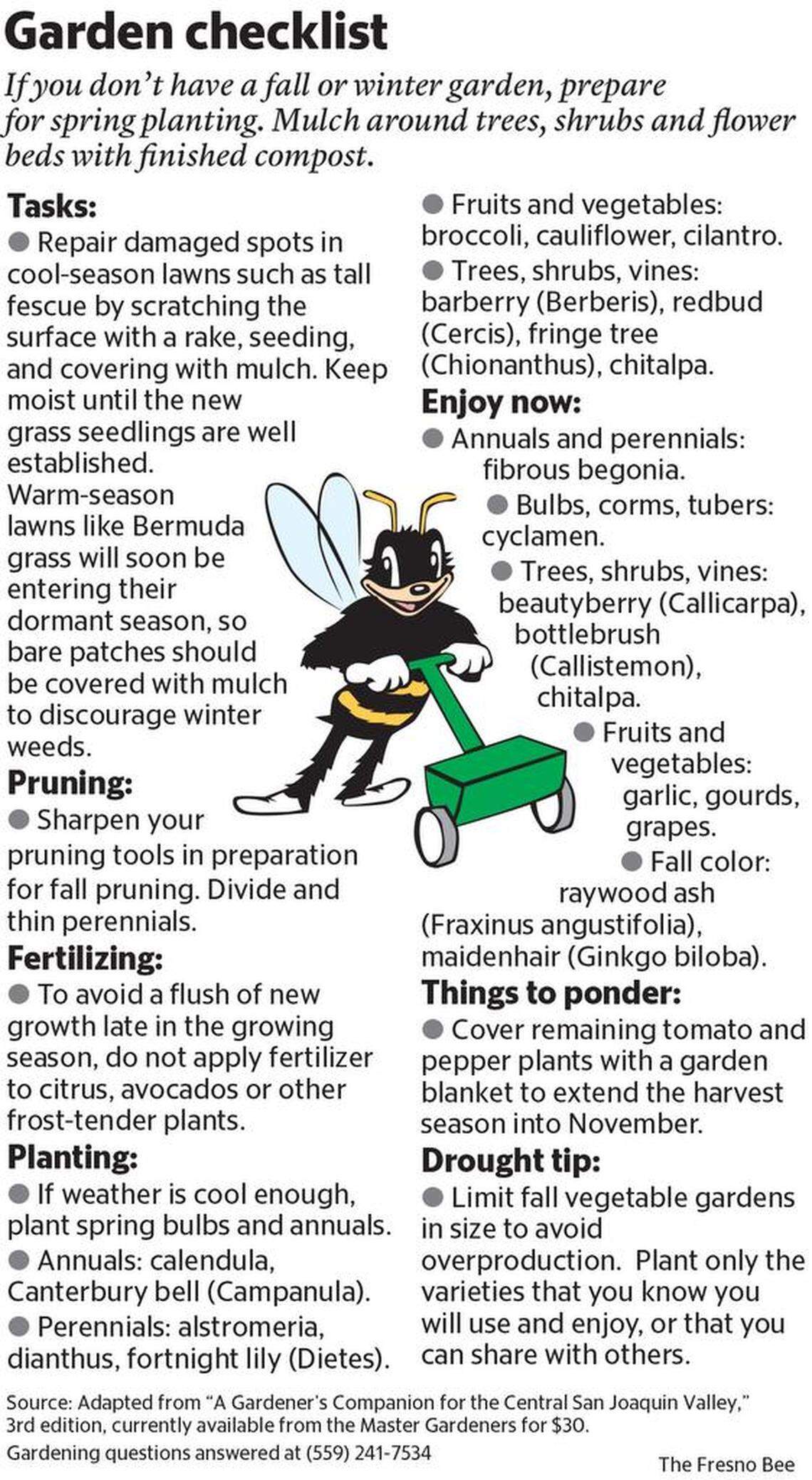 Pumpkin, squashes and melons and all members of the cucurbit family can only be pollinated by bees. Keep those plants producing flowers this fall by feeding them the same low-nitrogen food and keeping the soil consistently moist. Harvest regularly, especially zucchini and other squashes, to encourage more flowering. Peas planted from seed in September might have time to set bee-attracting flowers before the first frost.