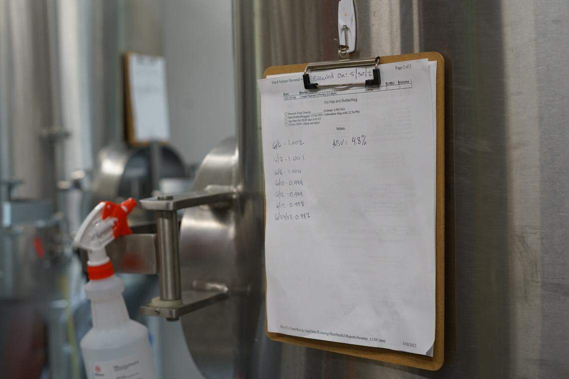 As the wort is fermenting, Whitehouse takes “gravity readings,” which show how much sugar is in the mixture, and ultimately how much alcohol is being produced.