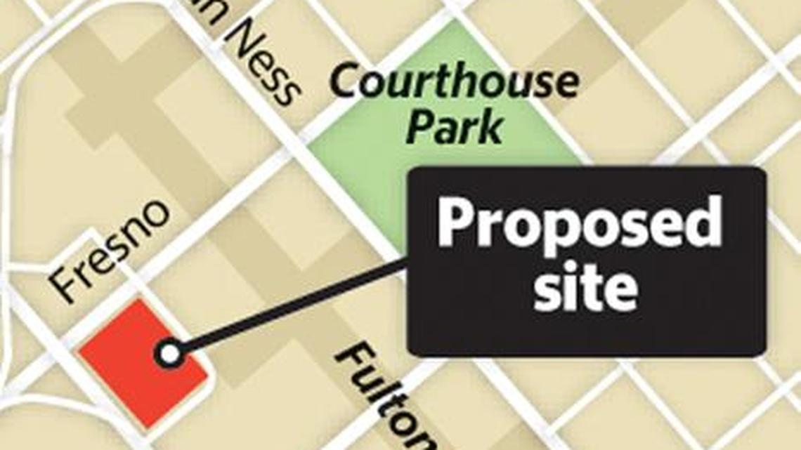 The property is the 2.8-acre Merchant Lot, a paved parking lot on the east side of H Street between Fresno and Mariposa streets. The site has been identified by the state rail agency in plans for its passenger station on the west side of H Street between Fresno and Tulare streets. The parking lot was owned by the city of Fresno’s Redevelopment Agency until the state dissolved redevelopment agencies a few years ago.