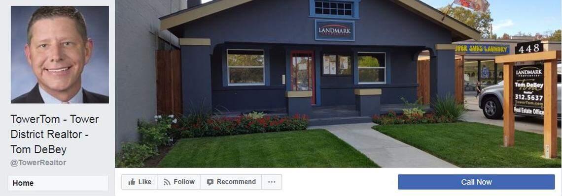 DeBey bills himself as "Tower Tom" for his real estate business. His Facebook page says he works at the Landmark office on Olive Avenue, in the heart of the Tower District..