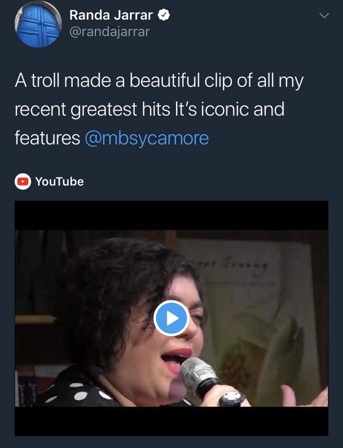 Jarrar seemed unapologetic about the clips in the video, calling it "iconic" and posting a link to her own Twitter followers on Friday. "A troll made a beautiful clip of all my recent greatest hits," she said.