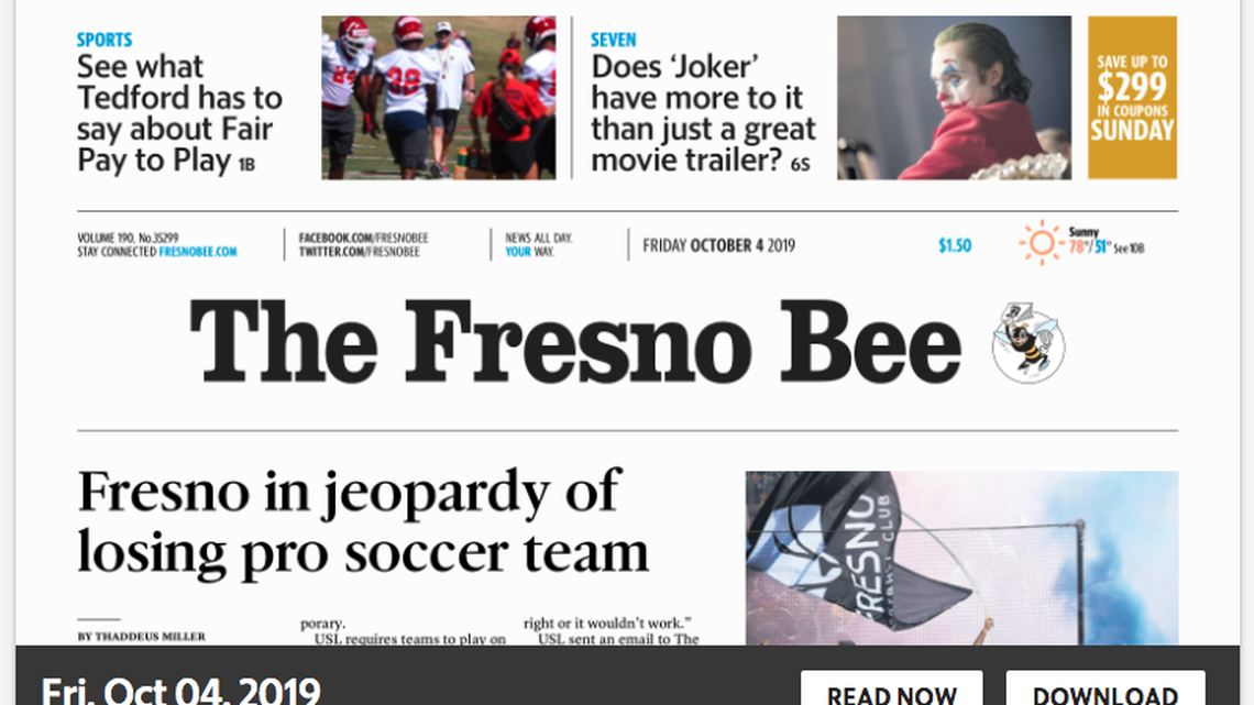 Yes! If you have a link that starts with “digital.olivesoftware.com” it will no longer work. Bookmark the new link on your desktop by visiting fresnobee.com/eedition. On your mobile device, simply click the newspaper icon at the top of the screen.